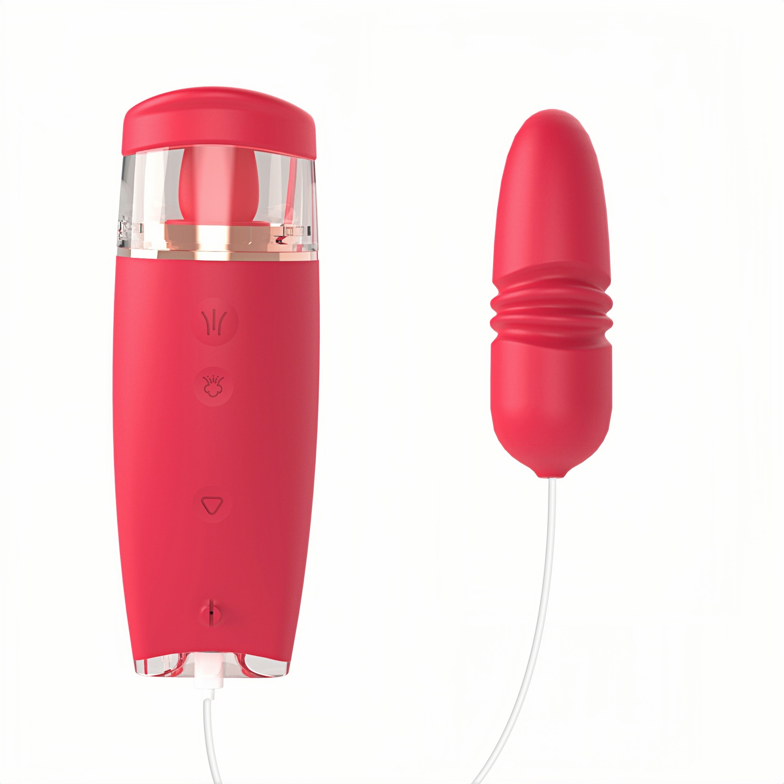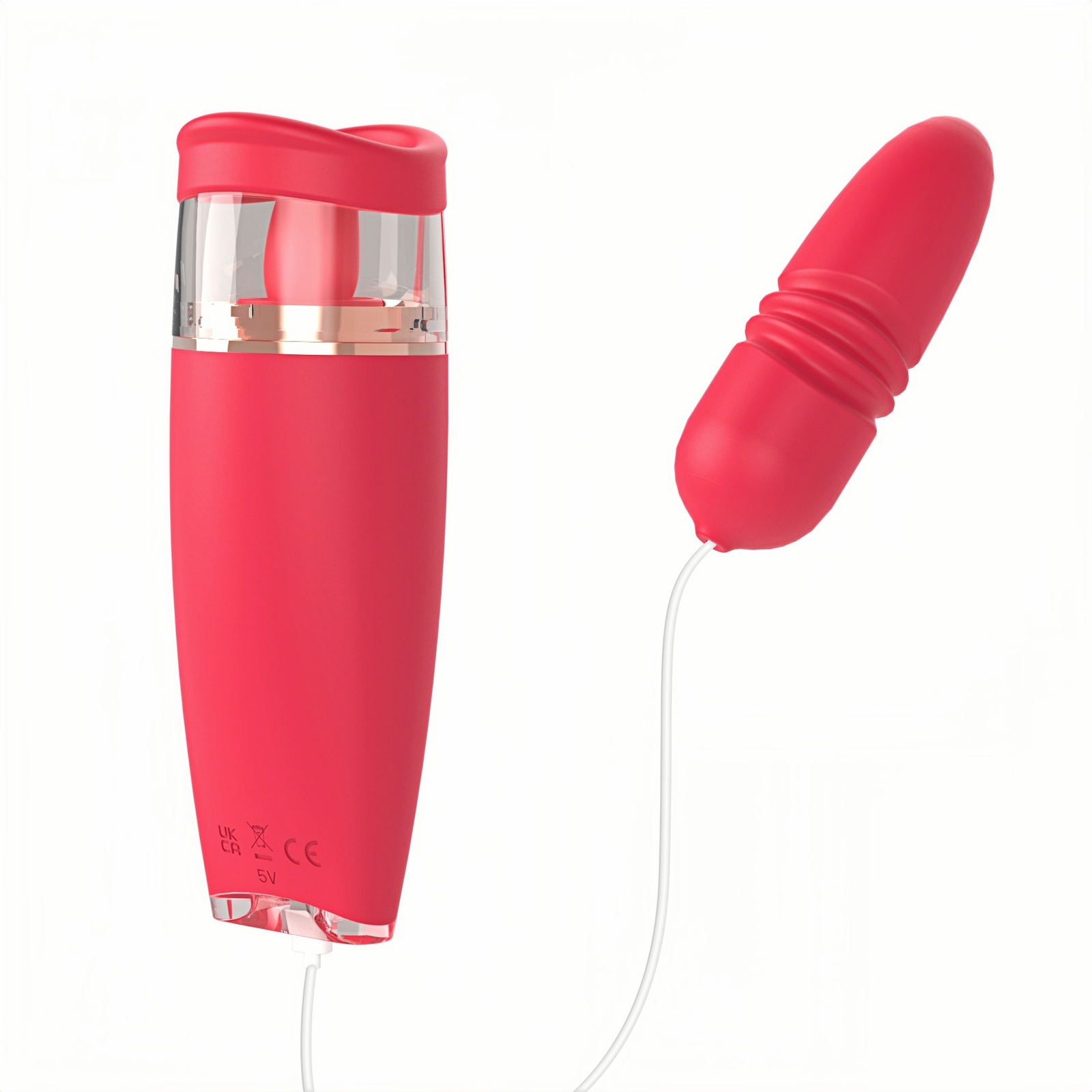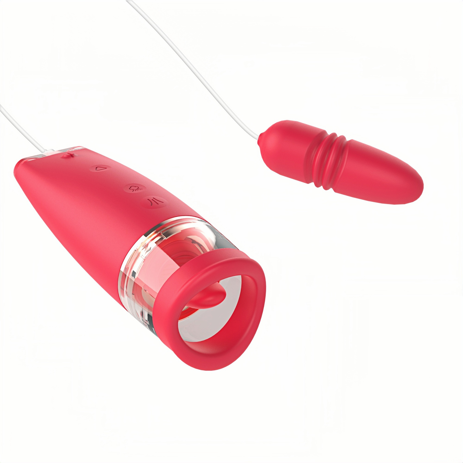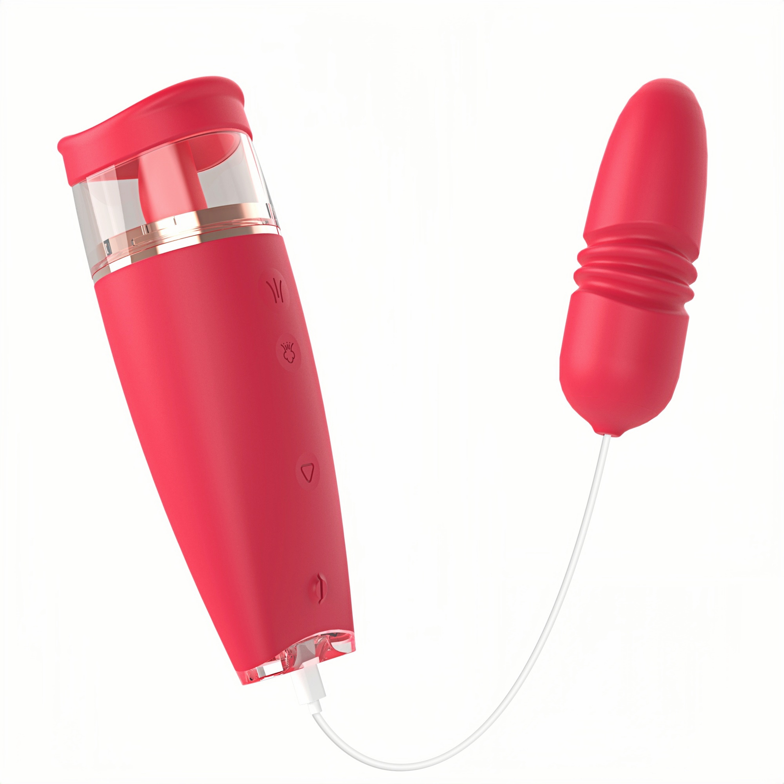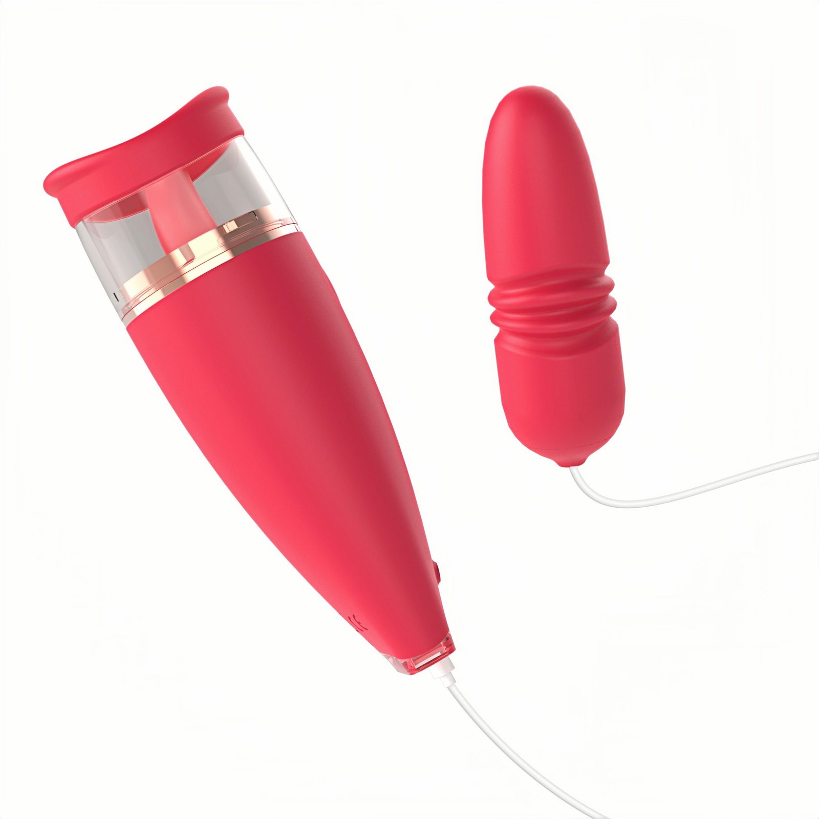 Main materials: Medical silicone + ABS + electroplated parts Color: Rose red Battery capacity: Polymer lithium battery 3.7V 600mAh Weight: Unloaded weight: 181.1g Jump egg weight: 88.1g Size: Unloaded size: 150.8*53.2*52.1mm Jump egg size: 416.17*35.19mm" Vibration frequency: 3 levels with 6 frequencies (vibration, tongue licking) 3 levels + 1 long suction (inhaling) 3 levels with 6 frequencies (vibration) + neutral position Charging time: ≤ 116 minutes Working time: Maximum not less than 63 minutes, minimum not less than 67 minutes Charging mode: Type-C USB charging (does not work during charging) Maximum noise: ≤ 55 dB Waterproof performance: IPX6 · Tongue Licking Device · Simple and elegant design · Comfortable to hold · Combination of multiple functions (tongue licking + vibration + sucking) · Multiple frequencies and different sucking experience methods · In-body extendable vibration vibrator